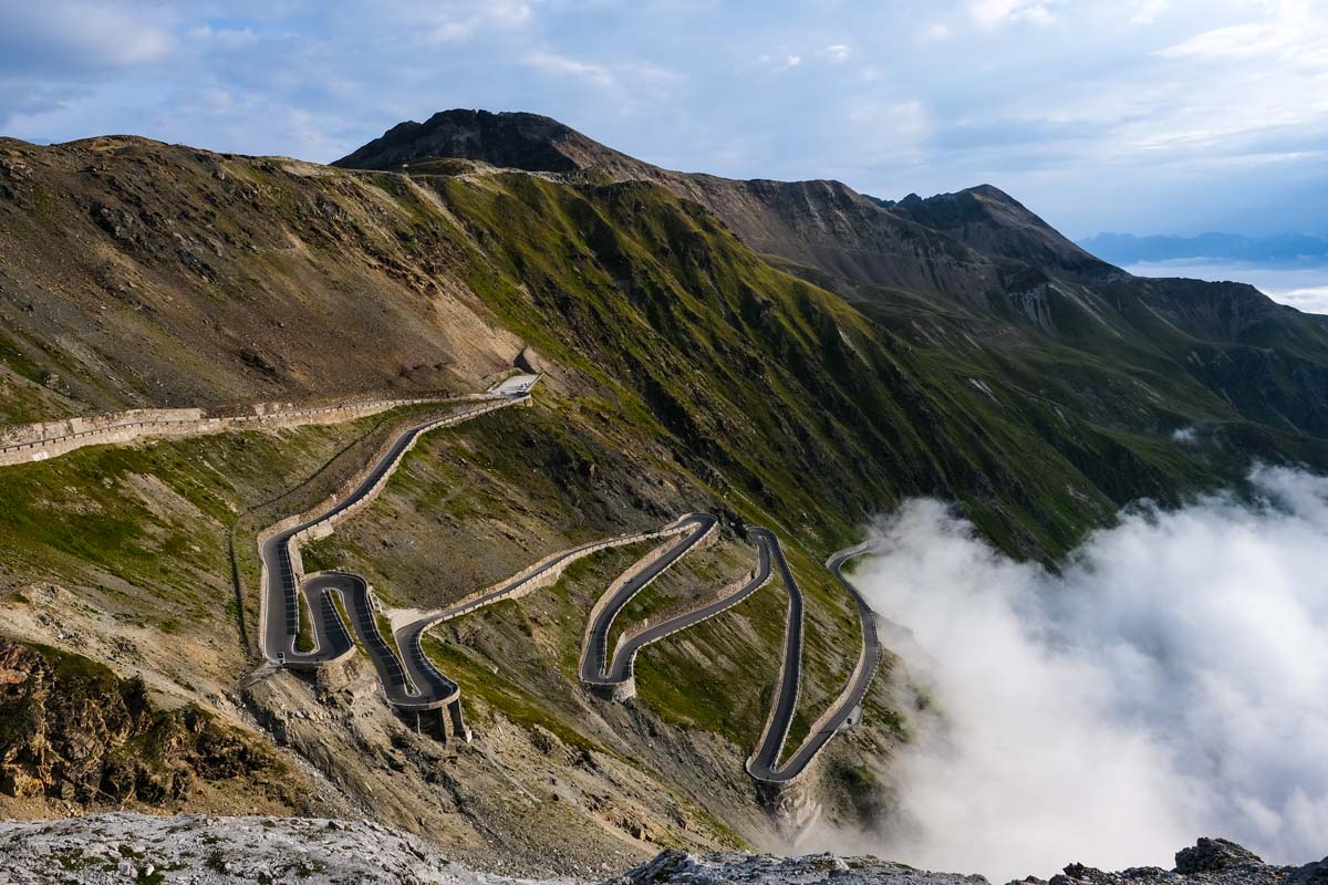 Ubrzo stižem na Reschenpass, koji me iznova oduševljava svojim dugim zavojima preko zelenih proplanaka i tunelima kroz stijene pri vrhu. S prvim mrakom stižem u Italiju, bez ikakvih kontrola na graničnim prijelazima. Neizvjesnost prelazaka granica je iza mene i tu brigu puštam za sutradan jureći niz Reschenpass prema Lago di Resia, gdje kratko zastajem da se pripremim za ono što slijedi. A to je Passo Stelvio, prijevoj svih prijevoja, moja najdraža cesta koju po prvi puta imam priliku voziti po noći.