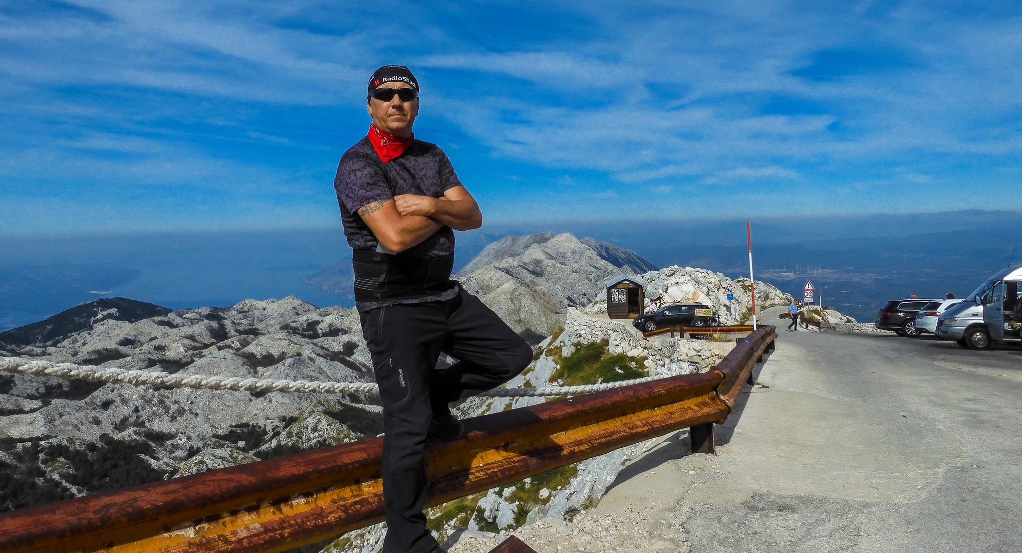 Cesta i dalje nemilosrdno vijuga i tjera me da se cijelim putem vozim brzinom 25-30 km/h. Dolaskom pod sam vrh Sveti Jure započinje završni najstrmiji i najopasniji uspon do odašiljača i malog parkirališta. Kada sam htio malo odmoriti renđer mi je dozvolio da smijem parkirati samo 20 minuta. Velika je gužva na malom prostoru i žele da svi dobiju bar malo prostora.