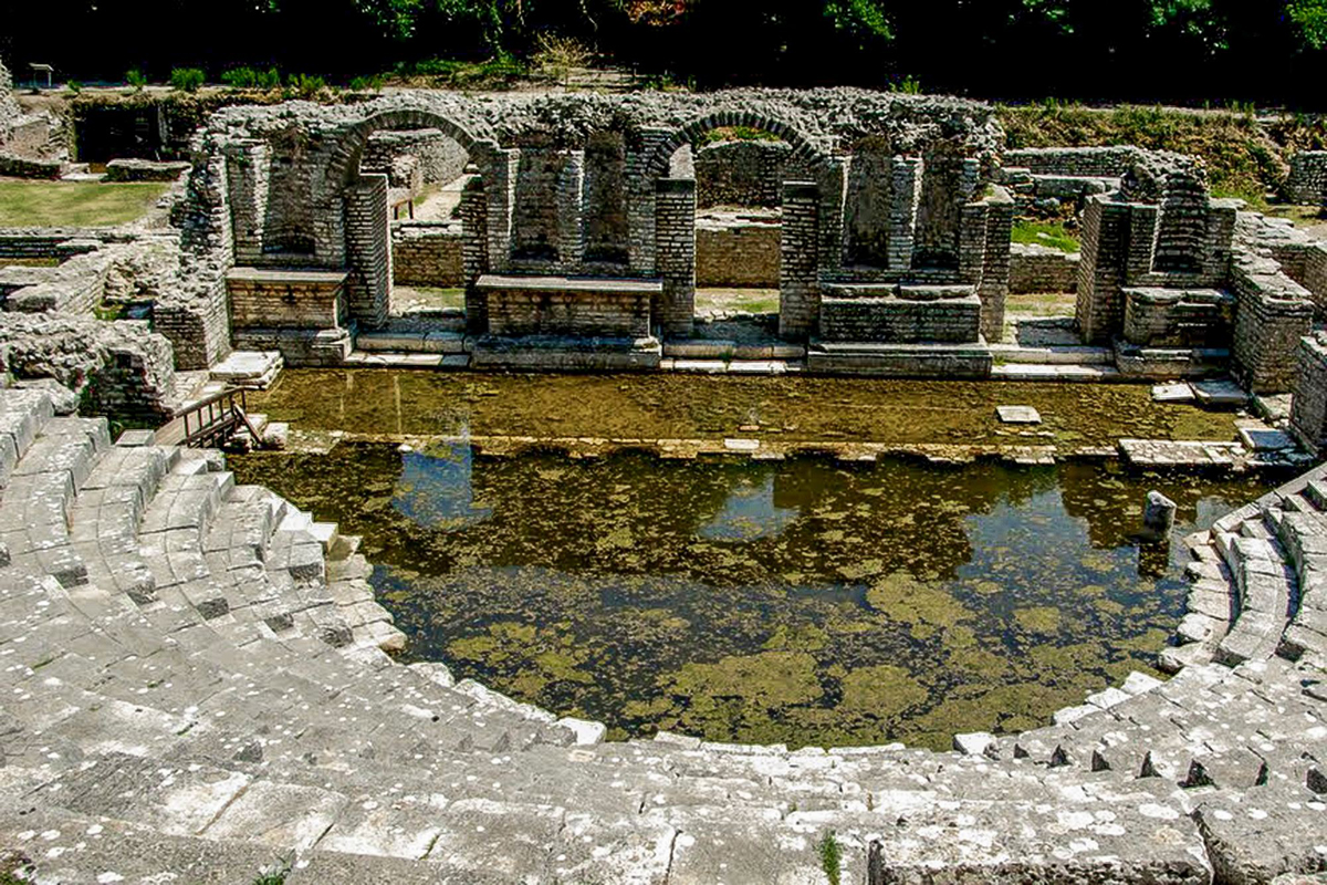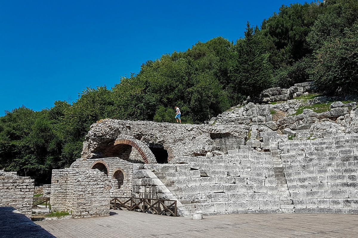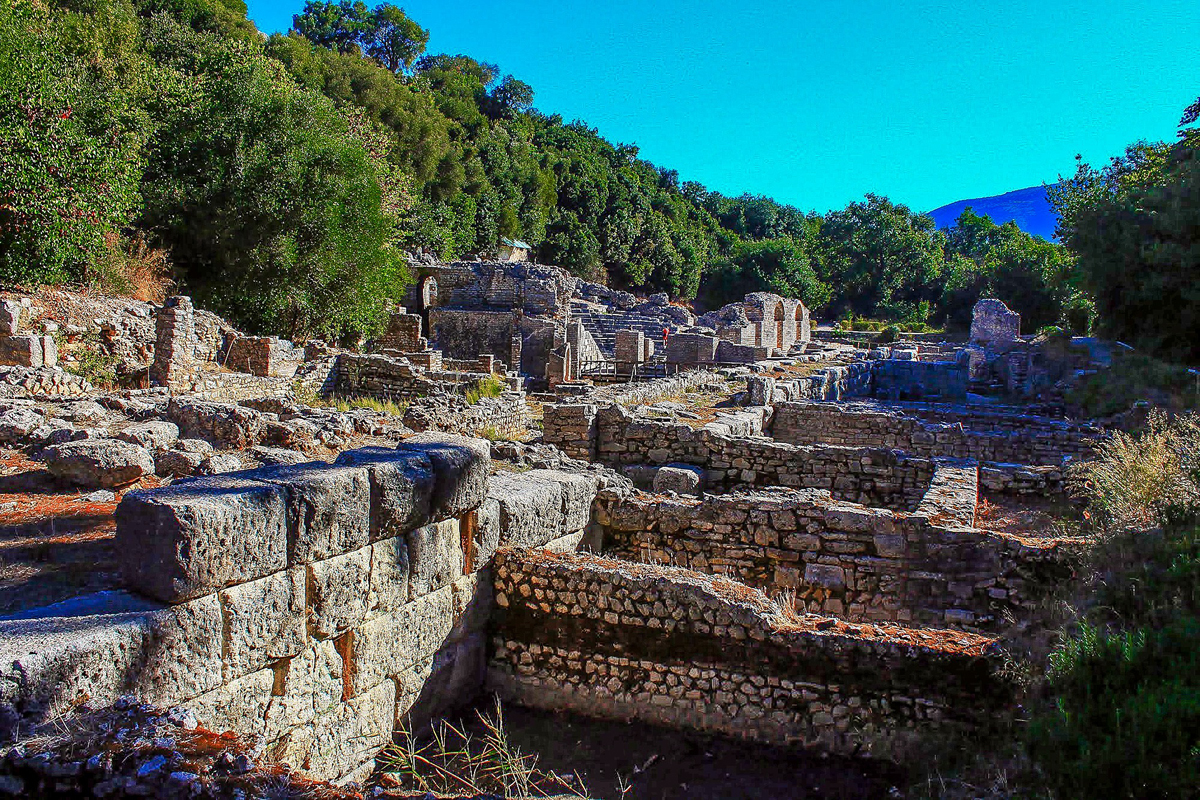Napuštamo Ksamil i nakon svega par kilometara dolazimo do obale kanala koji povezuje Butrintsku lagunu s otvorenim morem. Preko kanala vozi primitivna drvena skela vučena sajlom. Ali prije prelaska primjećujemo dva autobusa i mnoštvo ljudi. Idemo istražiti kuda su oni to došli i stvarno pogađamo u sridu. Za euro-dva koliko košta ulaznica obilazimo prekrasan arheološki park Butrint. Po onome što vidimo i što čitamo ovaj djelić zemlje je očigledno u povijesti bio izuzetno važan. Tu se nalaze ostaci građevina iz više povijesnih razdoblja. Tako pronalazimo starogrčke ostatke, zatim rimske, bizantske, otomanske i mletačke. Svi su oni ovdje imali svoj utjecaj i svoje interese.